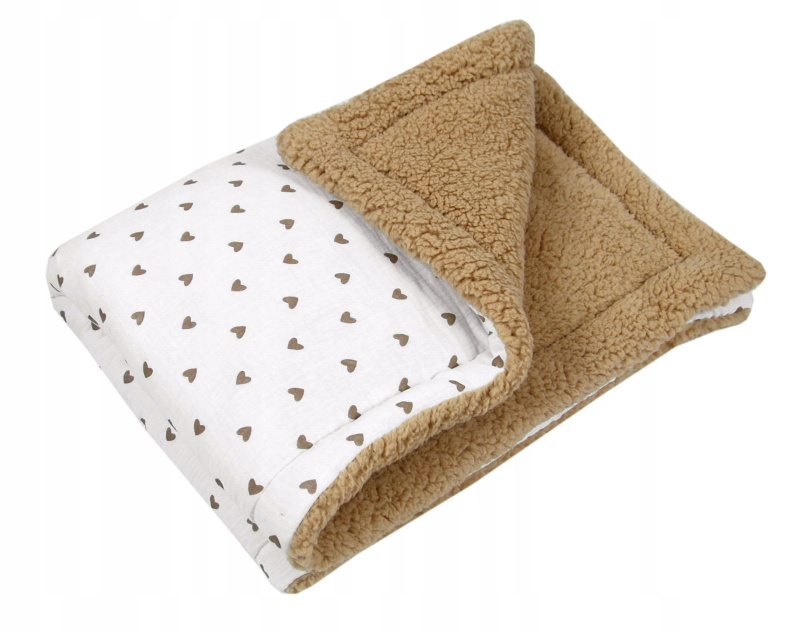 Mušelínová deka 100 x 75cm / srdíčka / béžová