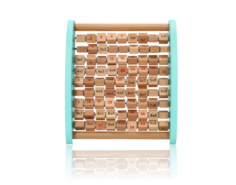 Na dřevěném podstavci je 9 příčných tyčí s 9 kostkami na každé z nich. Na jedné straně je úkol a na druhé řešení. Stačí otočit kostkou, abyste viděli výsledek. Dalším zjednodušením je použití dvou barev: jedné pro úkoly a druhé pro řešení. Matematické znalosti dítě získá i hrou s deskou.